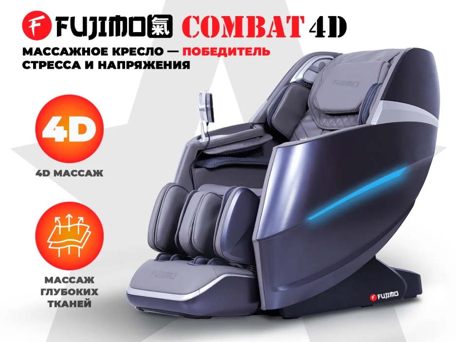 Представьте: вы приходите домой, садитесь в мягкое кресло — и уже через минуту чувствуете, как уходит напряжение, расслабляются мышцы спины, шеи и ног, а в голове наступает тишина. Массажное кресло FUJIMO 氣 Combat 4D — это не просто техника, а ваш личный массажист, созданный по японским технологиям для глубокого восстановления, улучшения сна и повседневного комфорта. Идеально подходит для дома, офиса или частного SPA.